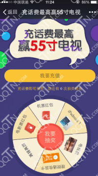 3.点击充值任意金额,即可参与抽奖活动,最高赢取55寸电视哦!
