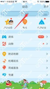 1、登陆手机QQ以后没在动态里即可看到搜索选项,如图;