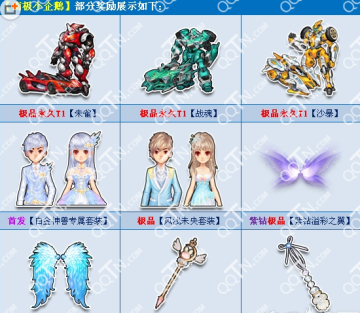 开启即有机会获得永久T1朱雀、永久T1战魂、永久T1沙暴、首发白金神兽专属套装或其他奖励之一!