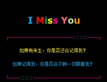 2015情人节浪漫留言代码 如果有来生你是否还记得我 时间:2015/2/10 10:20:00 作者:qqtn强柔 人气:0 效果如下:亲爱的,希望你一直能够不变,爱我的心宠我的意,让我一直能够感受到你的爱意好不好呢,当然啦,我也会一直对你好的!加载全部内容