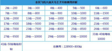 全民飞机大战进阶丘比特1-80升级费用一览