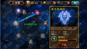从上图可以看出,神器系统共有7件神器,目前只开放了4件。每件神器都设置了激活条件,最先可以激活的是“霜月星屑杯”,它的激活条件是接到任务后打通普通关卡第3章的第9关。通关后自动激活神器“霜月星屑杯”,界面如图2所示。
