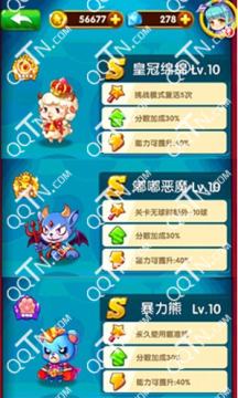 游戏中S型宠物只有3只,分别为贵族专属的皇冠绵绵、冒险之王的嘟嘟恶魔、萌物园的暴力熊。皇冠绵绵的技能是挑战模式可以复活5次、分数加成30%、能力可提升39%;嘟嘟恶魔的技能是关卡无球时额外+10球、分数加成30%、能力可提升39%;暴力熊的技能是永久使用瞄准线、分数加成30%、能力可提升39%。