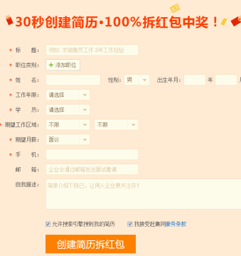 4、每天在活动页面投递手机验证的简历5次以上,即可获得拆红包机会1个,天天拆红包,拆到你手软~