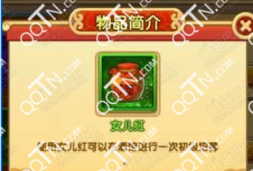 女儿红为游戏美酒资源,主要用在初期普通战将招募。