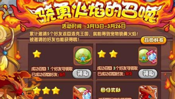 邀请5个好友 可领取10W宠物经验及骁勇火焰(30级)