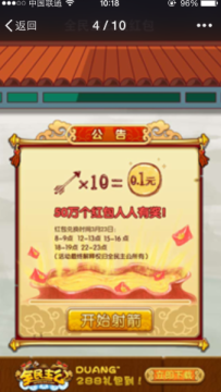 5、此外需要各位主公注意的是,每个微信用户只可兑换一次红包,请各位主公在活动时段内,根据射出的弓箭数量,自行选择兑换红包。