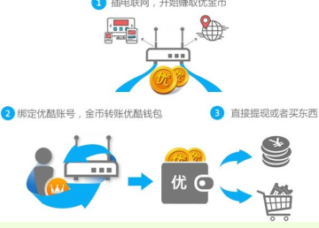 按照优酷的说法,这是一款能赚钱的智能路由器,从插电联网开始就能赚取优金币,绑定优酷土豆账号之后金币可转至优酷钱包并用于提现或直接购买产品。