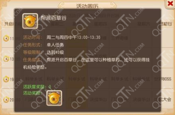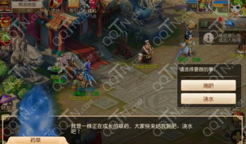 玩家在活动时间内进入帮派地图后,就会看到在帮派地图上刷新出了一定数量的药草(通常为5~6个)。点击药草,会出现三个选项,分别是施肥、浇水、除虫。点击其中任一选项,你就能够获得一个二级药和一点帮贡。