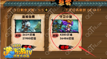 须弥山的通缉任务有白天跟黑夜的区别,守卫小童是黑夜可以接受的任务,每天有5次任务次数,使用点券可以增加任务次。任务完成奖励4380灵魂和36486经验。