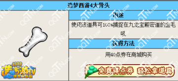 造梦西游4大骨头可以通过花费40点券在商城购买。