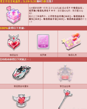 520浪漫来袭,5月19日-5月31日期间【王子公主礼盒】5折甜蜜献礼,原价62Q币现在仅售31Q币