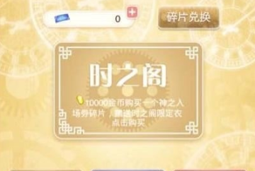 10000金币购买一个神之入场券碎片(暂定,应该会有改动),赠送时之阁限定衣。