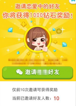 4、邀请好友10个人奖励1000钻石,这个奖励只能领取一次。邀请50人以后有成就奖励。按照上面说的一天能赚到1960钻石。进入游戏时候还会随机给一些钻石,小编被赠送了20000钻,据说是最少的。。运气好的话能拿到10W钻。