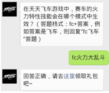火力特性技能肯定是火力大乱斗模式咯,你回答对了吗?希望可以帮助玩家们领取天天飞车每日一题的奖励。