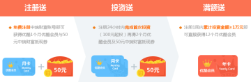 投资得3个月优酷会员+50元中瑞财富抵现券;