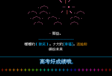 2015高考祝福留言代码 祝你高考考出好成绩 时间:2015/6/8 14:48:00 作者:qqtn强柔 人气:0 效果如下:高考总是一年一度热门话题,无论你考的怎么样,请放松心情,该来的总会来,相信老天会让所有人幸福。加载全部内容