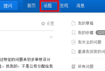 1、当你登录进入知乎首页后,在首页旁边你可以看到话题。