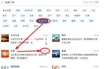 3、下面我们选择生活方式中的美食进行关注,这样这个话题就添加成功了。