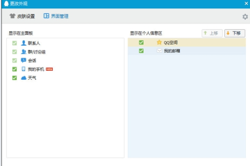 主面板设置,个人信息区仅提供QQ空间和邮箱