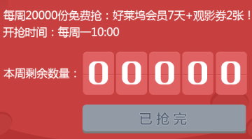 每周一10:00免费抢好莱坞会员7天+观影券2张!