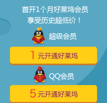 QQ会员专享首开1个月好莱坞会员享受历史超低价!