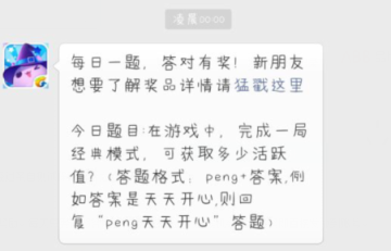 6月26日的每日一题:在游戏中,完成一局经典模式,可获取多少活跃值的答案就是peng5(小编经过亲自测试保证百分之百正确率。)