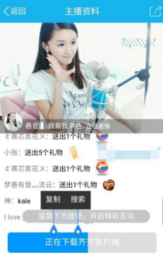 5、进入直播间之后,用户还可以和直播进行互动,如下图: