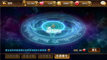 1、重生后,初始圣器得到保留,并返还精炼过程中消耗的同名圣器