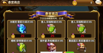 每天21点刷新,每次刷新6种伙伴碎片,玩家可以在悬赏商店中使用一定数量的国王奖牌进行兑换。悬赏商店也是收集伙伴的主要渠道之一,认准想要的伙伴去收集吧!