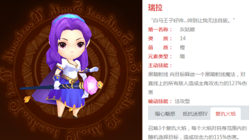 灰姑娘的一个法攻型的伙伴,攻击力是根据主角的攻击而定的,这对于后期的玩家来说还是比较划算的。而且灰姑娘有击倒效果,以及抗魅惑的能力,在关键时刻,可以挽救一下肉盾的生命,借由奶妈将伙伴救活。