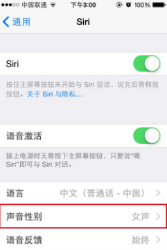4、点击就可以切换 Siri 的声音了,切换后返回就可以了。