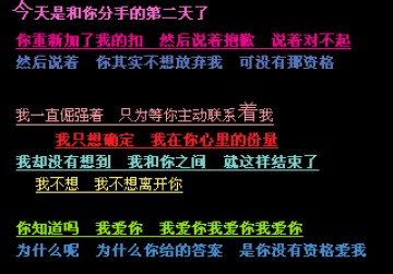 分手伤心的留言代码2015 一直倔强着等你主动联系 时间:2015/7/14 16:26:00 作者:qqtn强柔 人气:0 效果如下:分手后的那天,我明显看到你解脱的神情,这样的你,让我很难过,在一起这么久,你竟然未曾感到可惜。加载全部内容