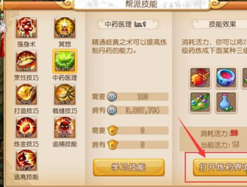 1、首先打开帮派技能面板