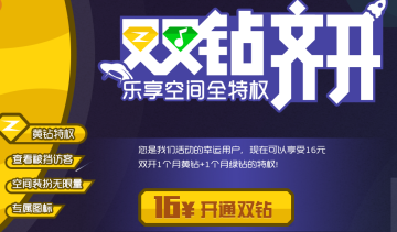 QQ空间双钻齐开,黄钻绿钻联合活动,16元即可同时开通两钻,活动时间截止为今年年底,感兴趣的朋友们快来参与吧!
