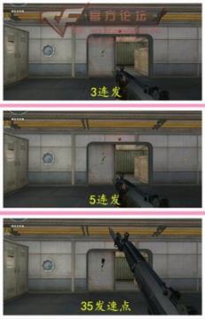 由上图可以清晰看到,QBZ03-A的3连发前2发集中在一个点位,第三发紧贴前2发弹痕,非常适合精确打击指定部位。5连发前3发集中,后2发上扬,对于快速反应开枪打击敌人腹部以上位置寻求稳定伤害有着不错的效果。35发无控枪的速点,弹道5发后上扬,然后较为集中在一个区域。速点的弹道我们可以看出,在实战中使用5到8发的速点攻击非常高效,只需在3发后轻微调整准心下拉,或利用停顿自行恢复准心。