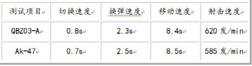 在枪械速度信息方面,QBZ03-A与AK47在切换、换弹、移动上差距可以忽略不计。在射击速度上每分钟要高于AK47约35发。