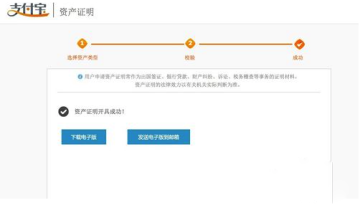5、接下来显示电子资产证明开具成功,可以直接下载电子版,或是发送到邮箱里。