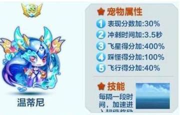 温蒂尼的技能表现主要在于快速进入超级奖励模式,从各种角色加分的情况来看,这款宠物应该更适合暗夜宝贝、齐天大圣、魔女娜娜这几款角色,至于未来少年,还是好好地用着巴哈姆特吧。
