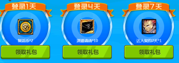 活动期间内,玩家登录游戏后在本页面签到达到对应天数,可领取对应登录礼包一份。每种登录礼包单Q限领取一次