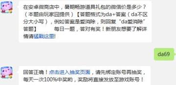天天爱消除在安卓微商店中,暑期畅游道具礼包的微信价是多少?(本题由玩家囧提供)