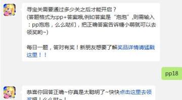 作者:qqtn小影 人气:0全民泡泡大战寻宝关需要通过多少关之后才能开启?8月3日的微信每日一题活动已经更新完毕了,那么全民泡泡大战寻宝关需要通过多少关之后才能开启?下面一起来看看全民泡泡大战8月3日每日一题的答案吧。