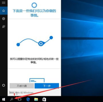 6、设置完成后,在任务栏上就有一个小搜索图标了。功能和“搜索web和windows”的窗口一模一样!