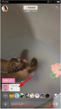打开一个直播,在最下方的输入框中输入你想要说的文字,然后点击“分享”,你就可以在屏幕中看到自己说的话啦~