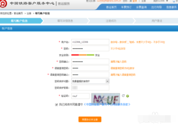 注册页面填写12306账号信息,这个账号用于以后登录12306网站购票。
