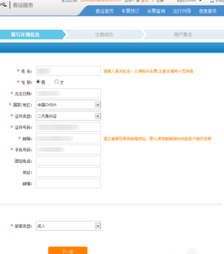 此处填写的信息需要与身份证信息相同,否则使用此用户购买了火车票后,取不出票。
