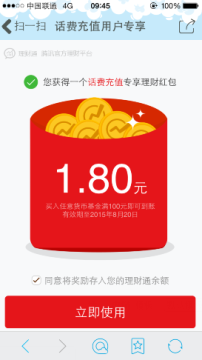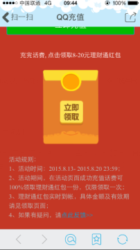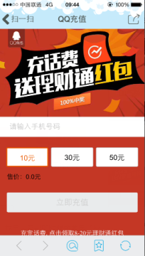 手机QQ充话费送理财通红包活动 100%领8-20元理财通红包