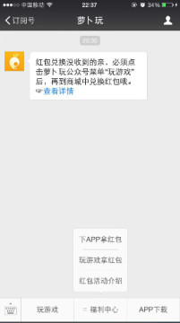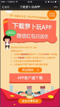 微信关注“萝卜玩” 看福利中心下载APP拿红包