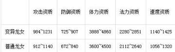 当然只有外观不同是对不起“变异”两个字的,变异宠物们的资质下限和上限都高于普通宠物,下面以龙女为例,大家对比便知。