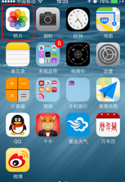 步骤1:在ios8桌面点击“照片”按钮进入如图。